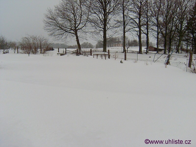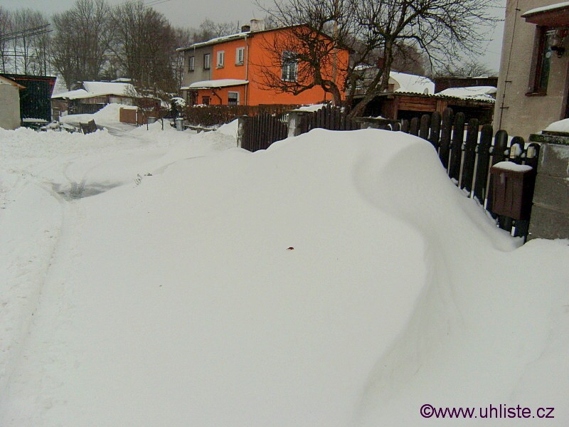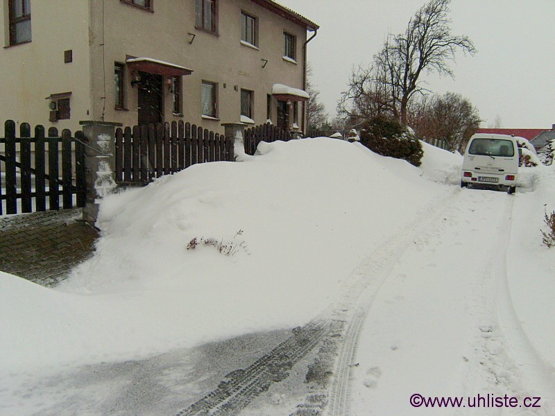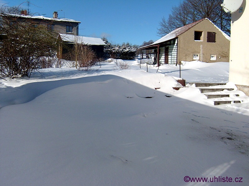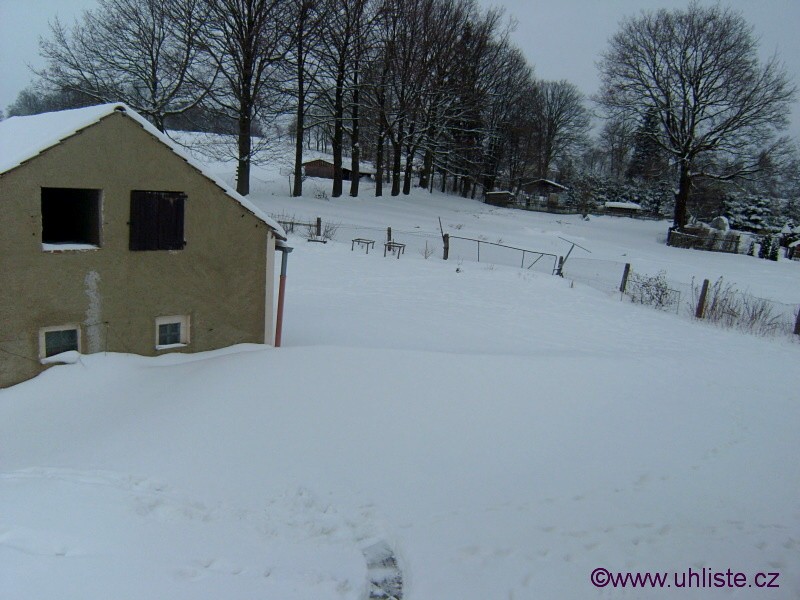 Od předvčerejšího večera vydatně sněžilo, foukal silný vítr a tvořili se obrovské závěje. Dnes již svítí sluníčko, jé to nám napadlo sněhu!!! Teď již je v Uhlišti hodně sněhu, více zde nepamatuji.